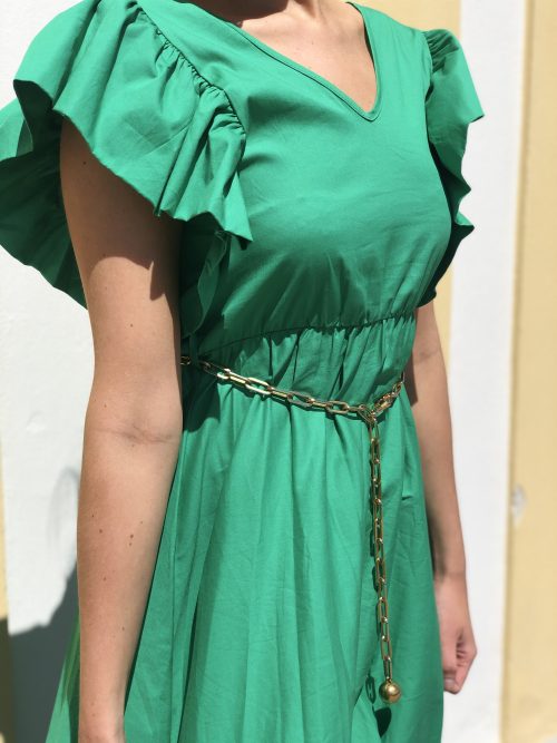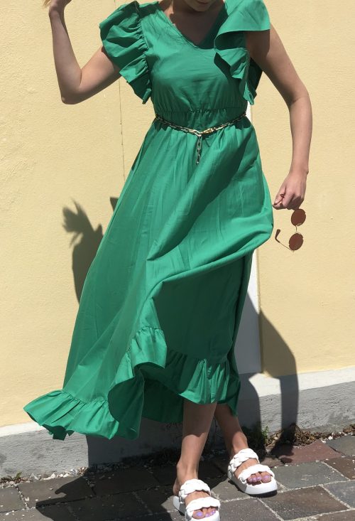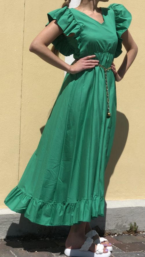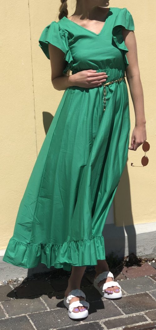Maxikleid mit Volantschultern als Blickfang und Schleife