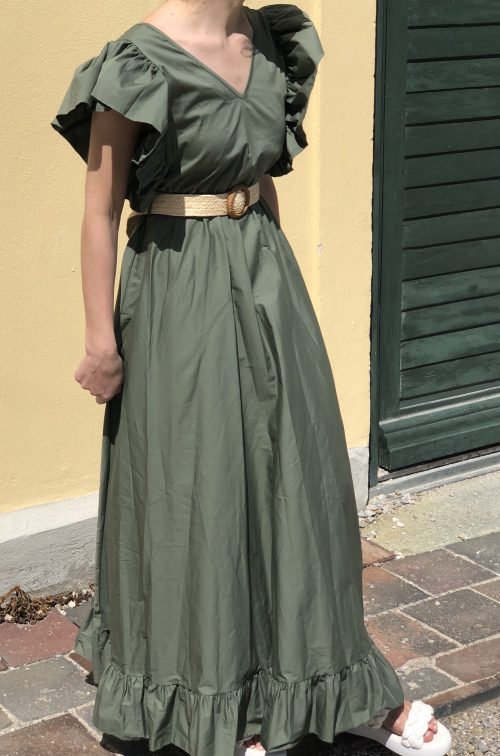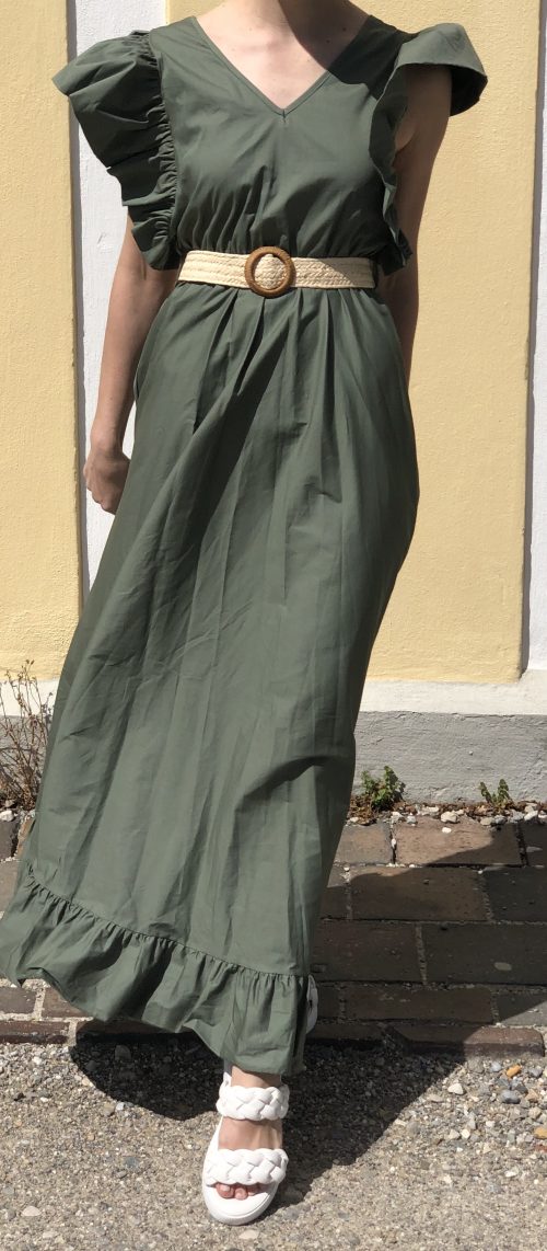 Maxikleid mit Volant als Blickfang und Schleife
