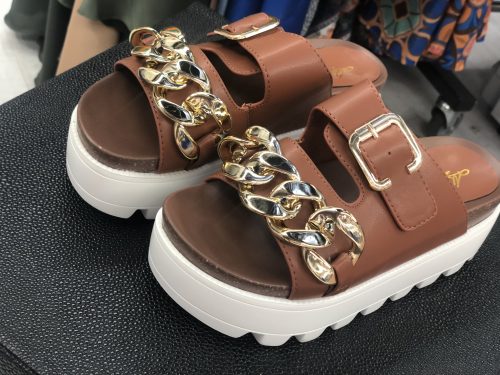 Braune Plateau Sandalen mit zwei Schnallen und Kette als Blickfang