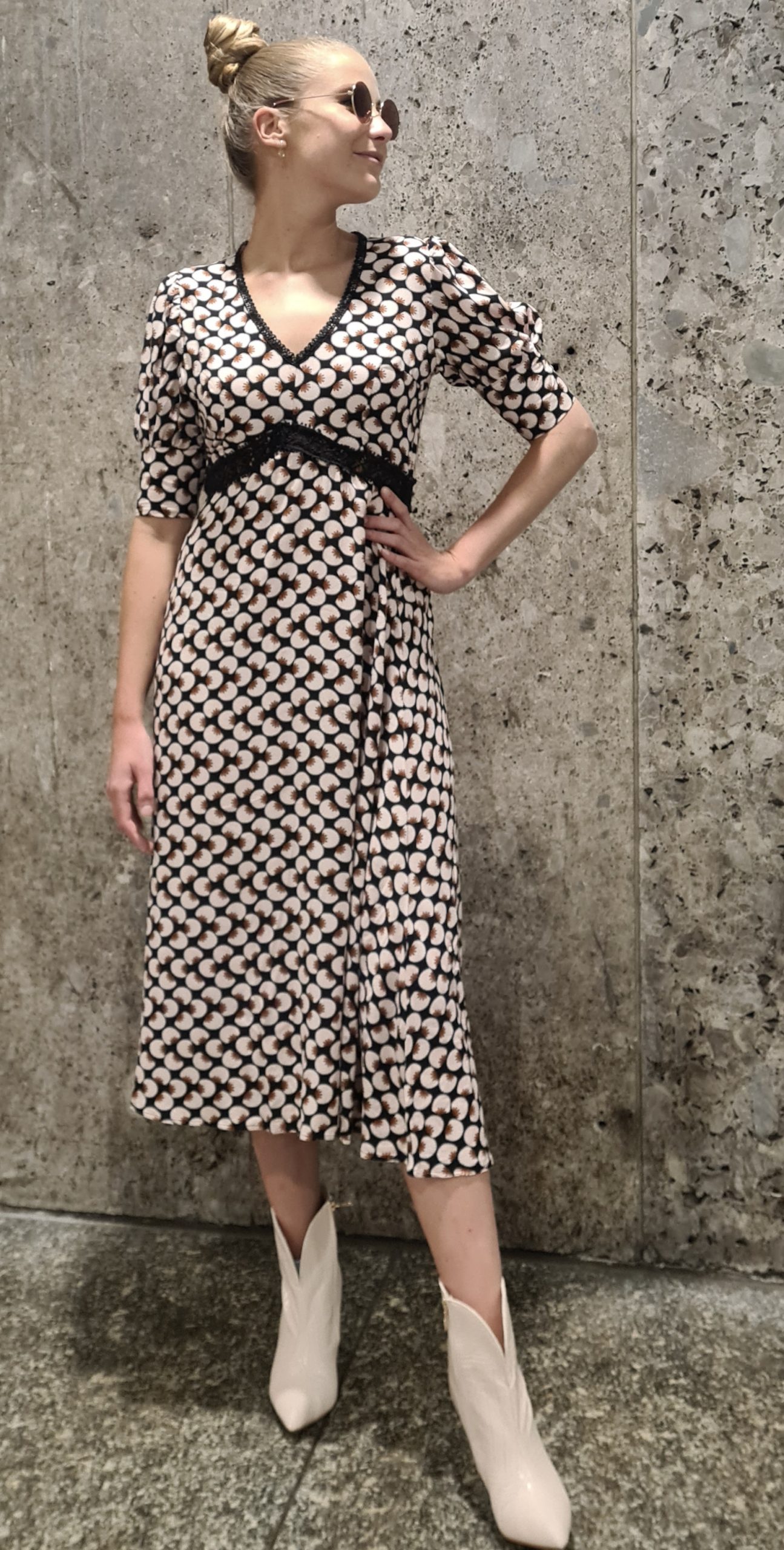 Retrokleid in Midilänge mit leichten Puffärmeln